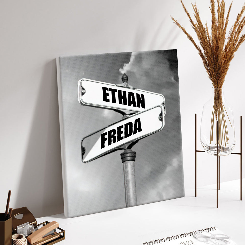 Personalisierte Namensleinwand Mit Jahr Und Datum, Vintage-straßenschild, Kreuzung, Leinwand, Jahrestagsgeschenk Für Paare