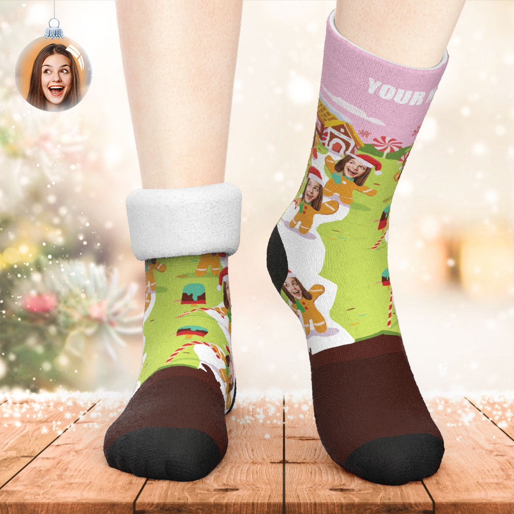 Benutzerdefinierte Dicke Socken Foto 3d Digital Gedruckte Socken Winter Warme Lebkuchenmann Weihnachtssocken