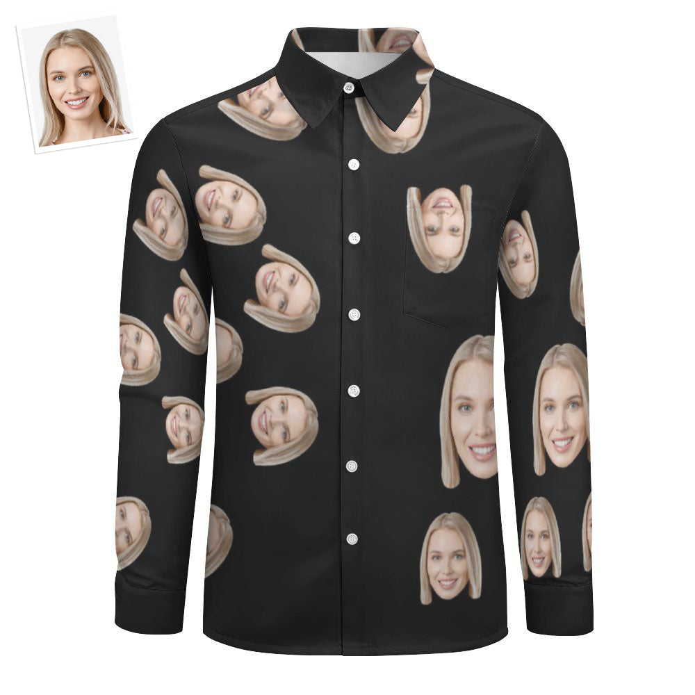 Benutzerdefiniertes Gesicht Schwarzes, Großflächiges, Langärmliges Hemd Mit Durchgehendem Druck