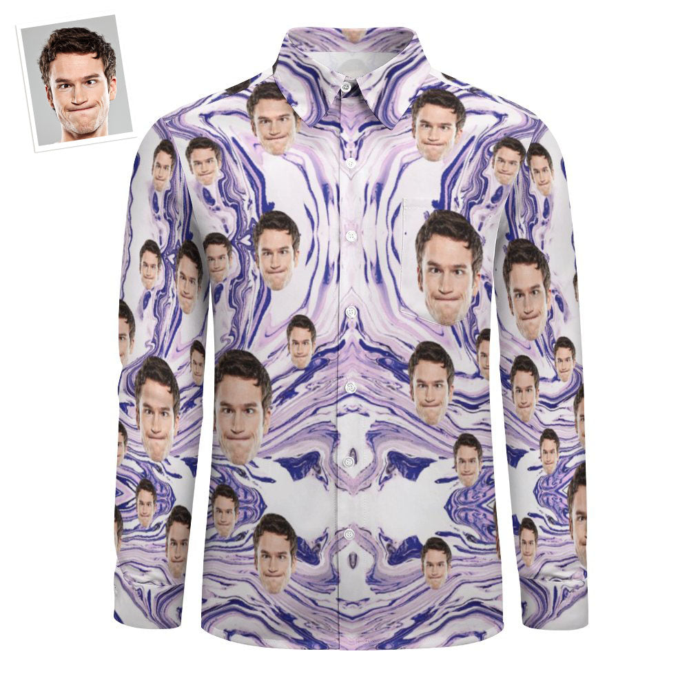 Benutzerdefiniertes Gesicht Lila Marmorierung All Over Print Large Long Sleeve Shirt