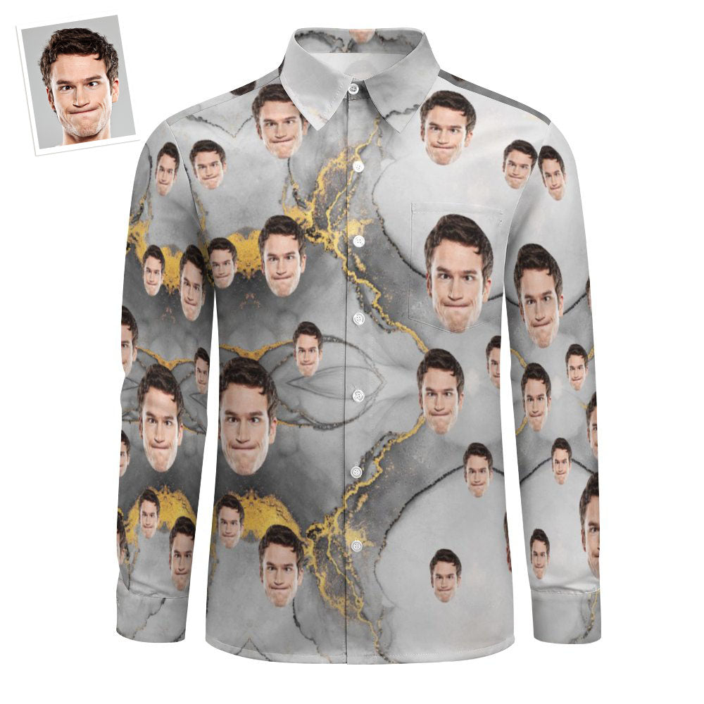 Benutzerdefiniertes Gesicht Allover-Print Großes Langärmliges Hemd Marmortinten-aquarell-textur