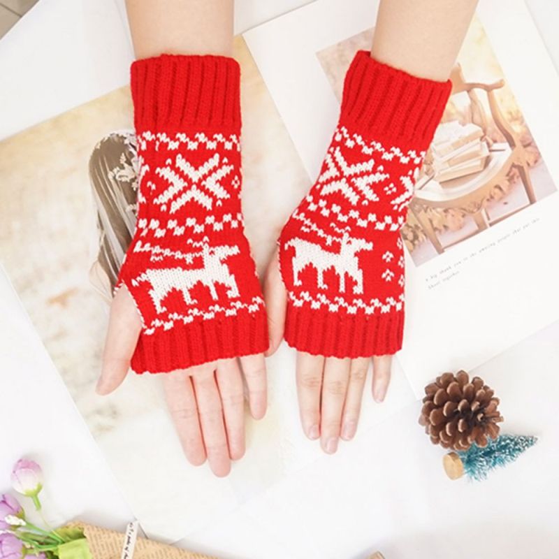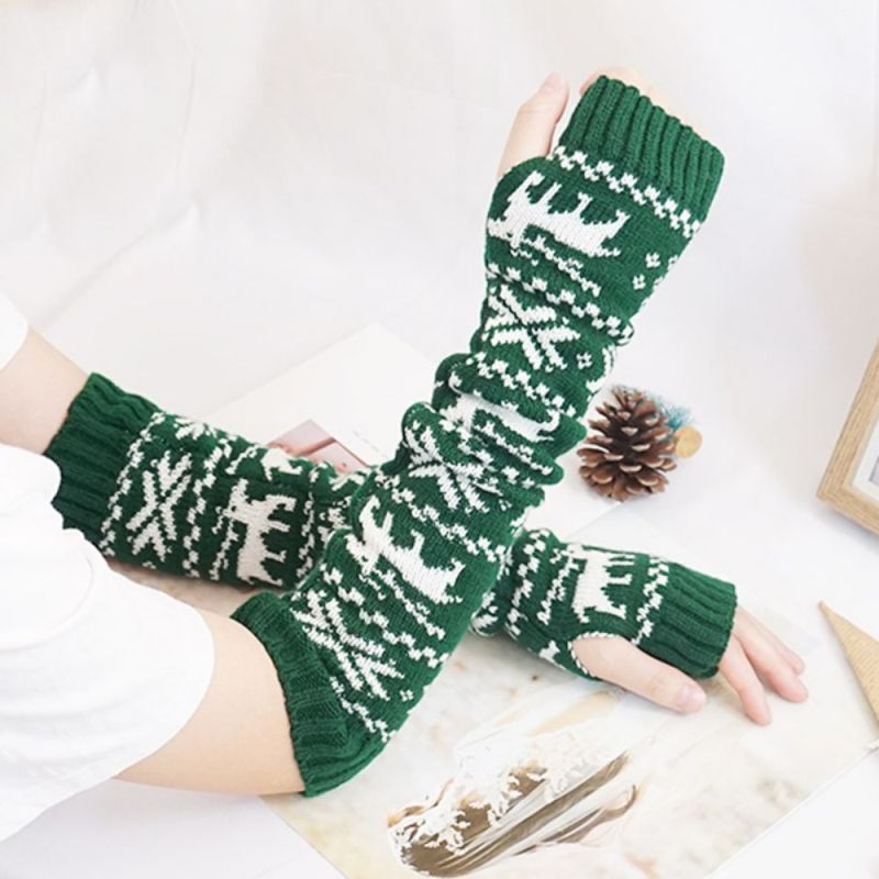 Weihnachts-winter-warme Armabdeckung Rehkitz-halbfinger-strickärmel