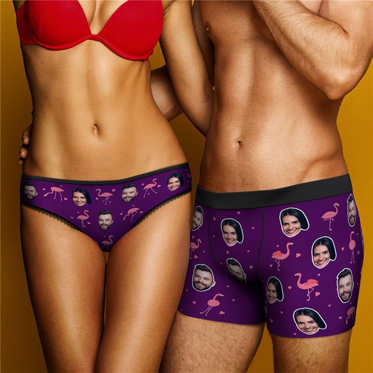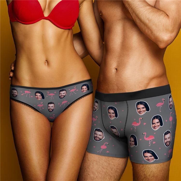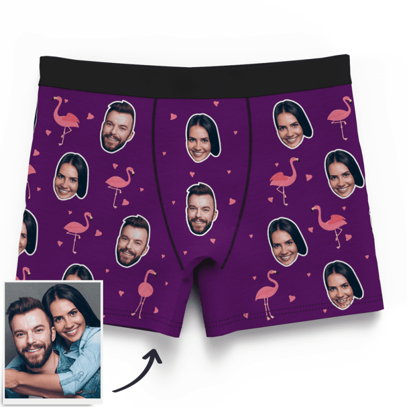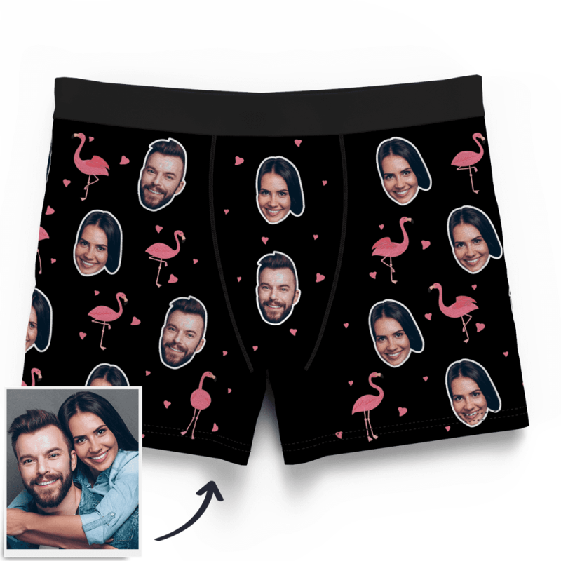Valentinstag Geschenk Paar Herren Kundendefinierte Flamingo Gesicht Foto Boxershorts