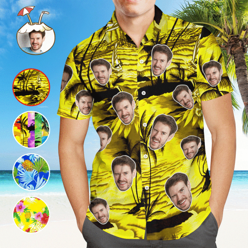 Benutzerdefinierte Aloha-hawaii-hemden, Gesichts-hawaii-hemden, Kokosnussbaum-hemden, Gruppengeschenk