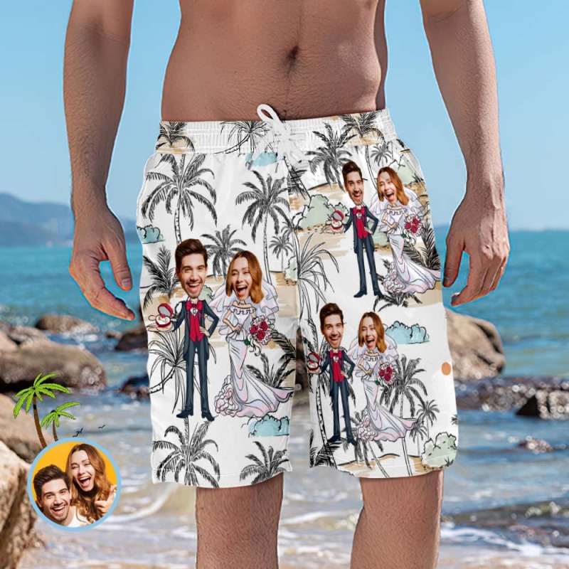 Benutzerdefinierte Strandshorts Künstlerische Hochzeit Foto Badehose Bestes Hochzeitsgeschenk