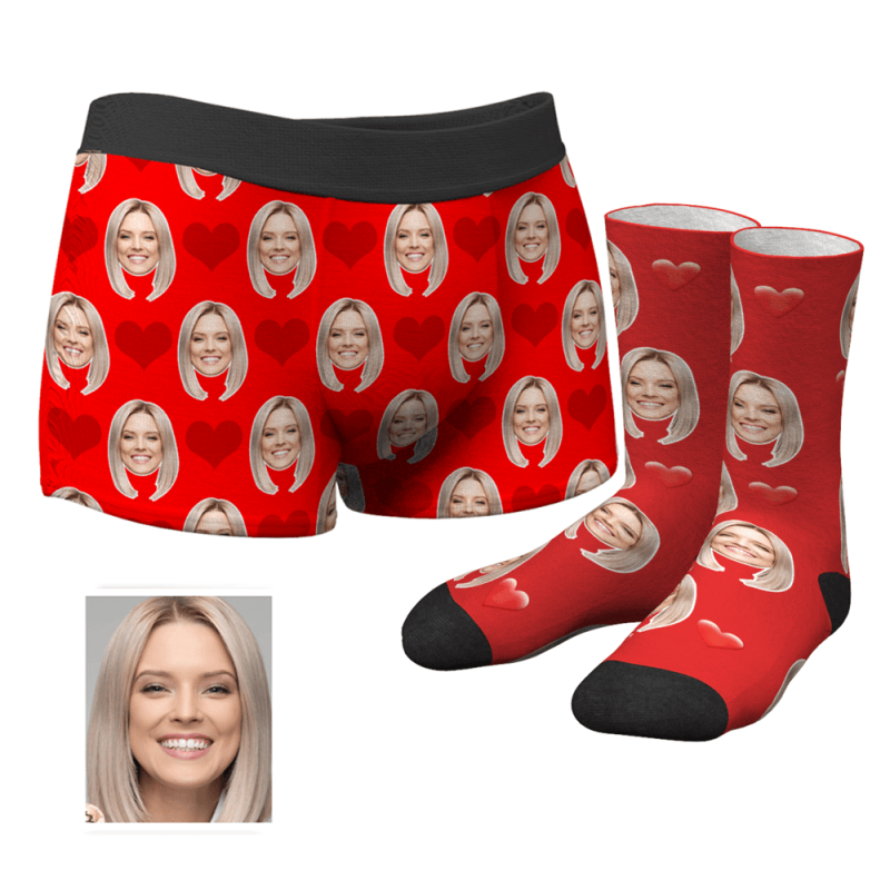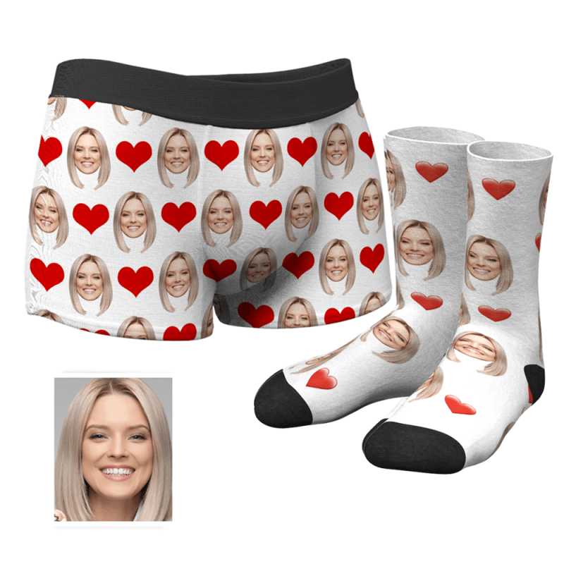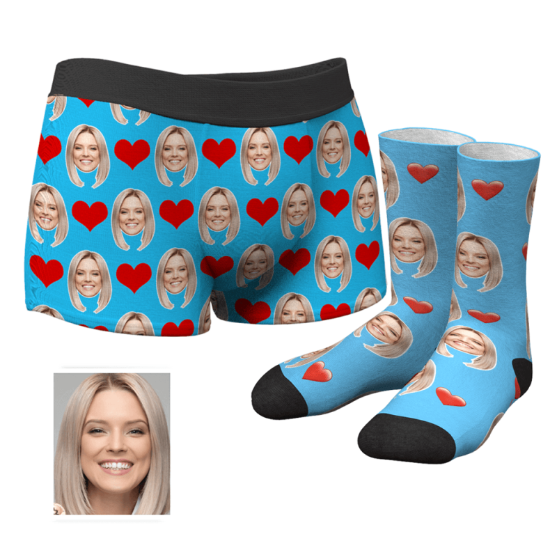 Foto Socken Gesicht Socken Herren Personalisierte Gesicht Boxershorts Unterhose& Socken Boxersocken Set - Lustiger Gesichtsboxer