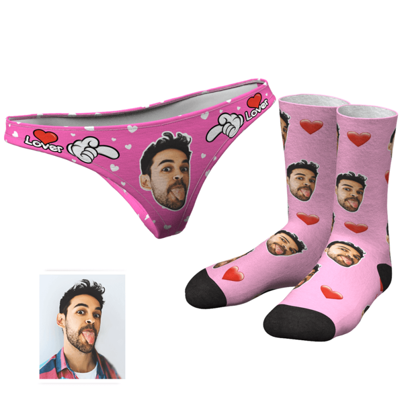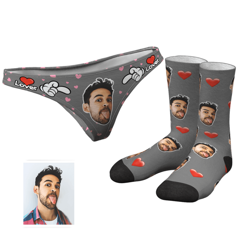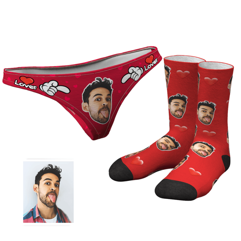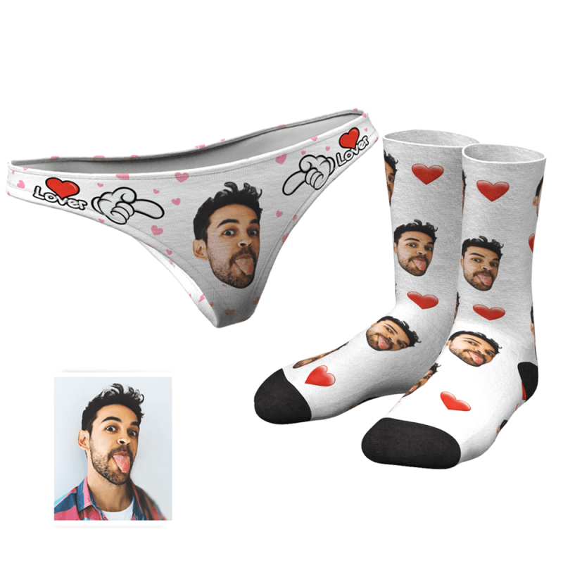Foto Socken Gesicht Socken Herz Höschen Socken Gedruckt Gesicht Liebhaber Set - Lustiger Gesichtsboxer