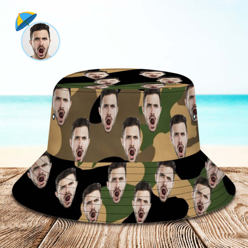 Kundenspezifischer Eimer Hut Gesichts Eimer Hut Personalisieren Sie die breite Krempe Draussen Sommermütze Wandern Strand Sport Hüte Geschenk für Liebhaber – Tarnung
