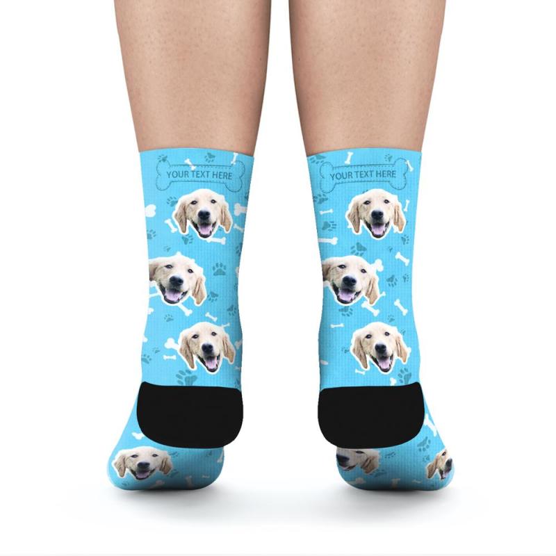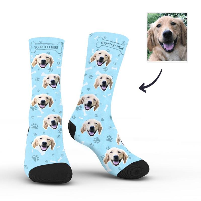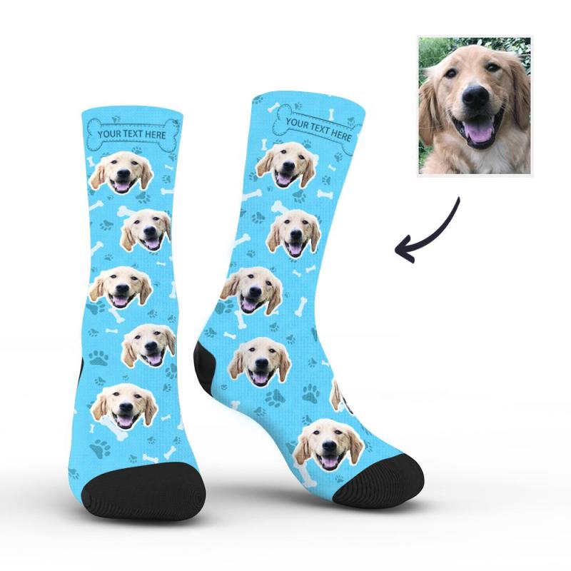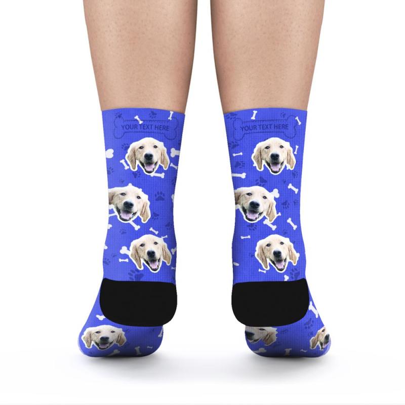 Personalisierte Socken Benutzerdefinierte Fotosocken Hund Foto Socken mit Ihrem Text - blau