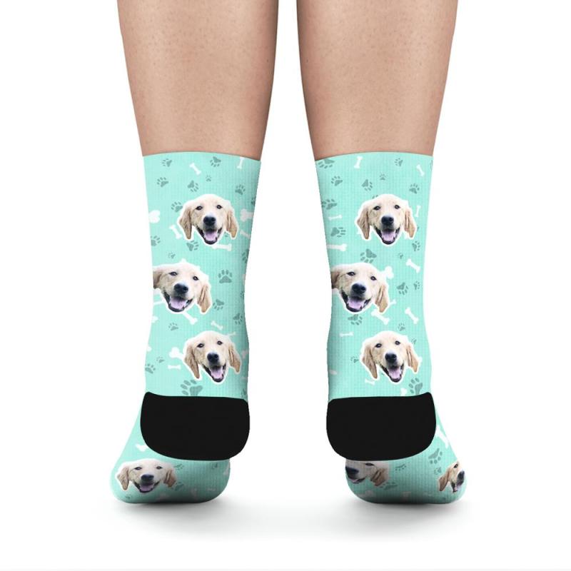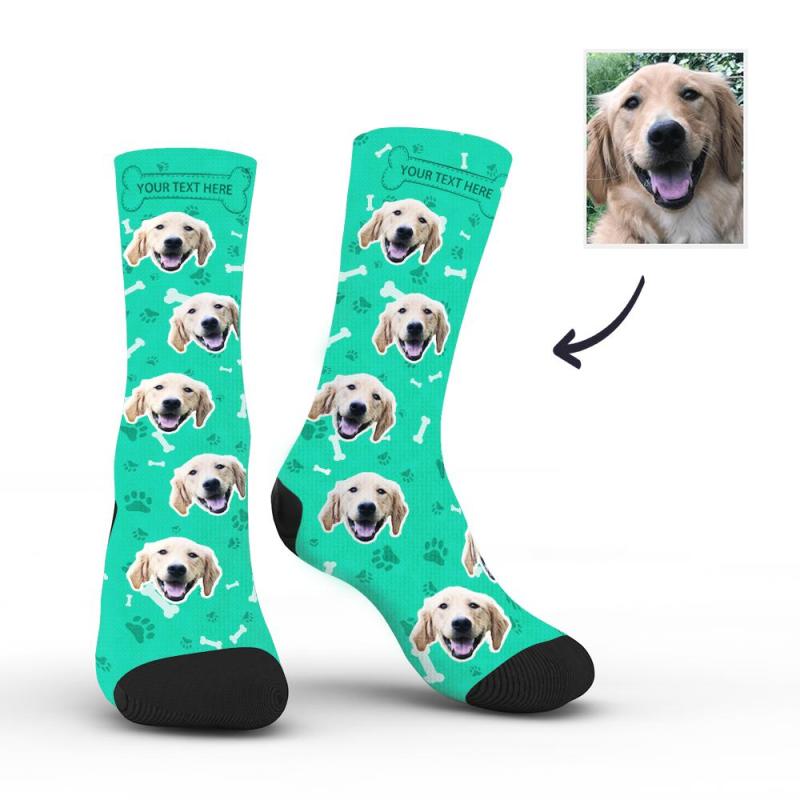 Personalisierte Socken Benutzerdefinierte Fotosocken Hund Foto Socken mit Ihrem Text - Blaugrün