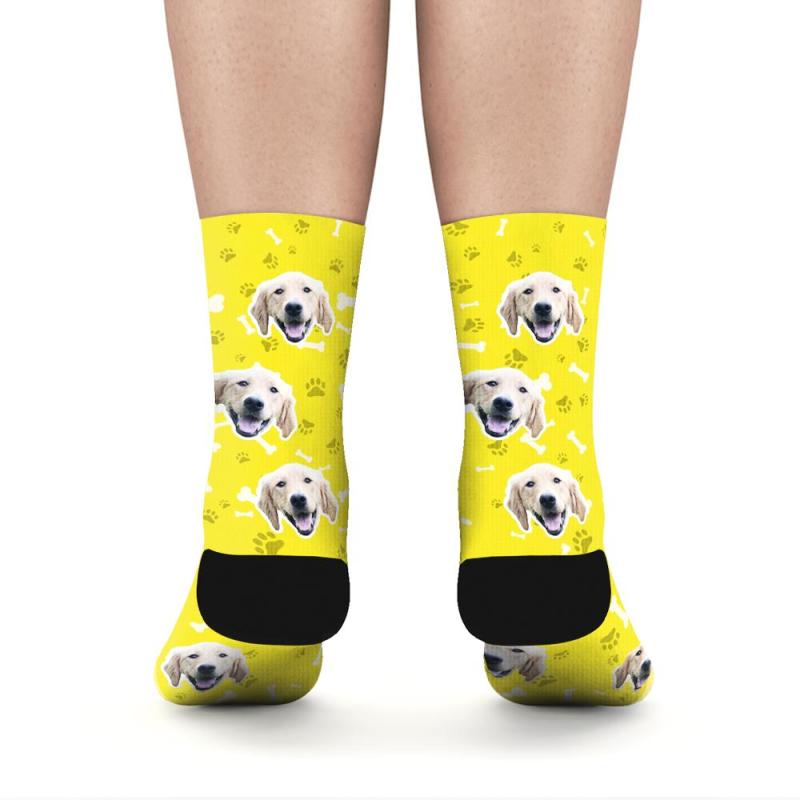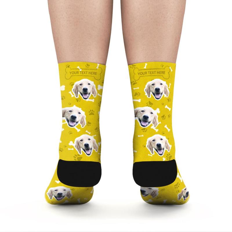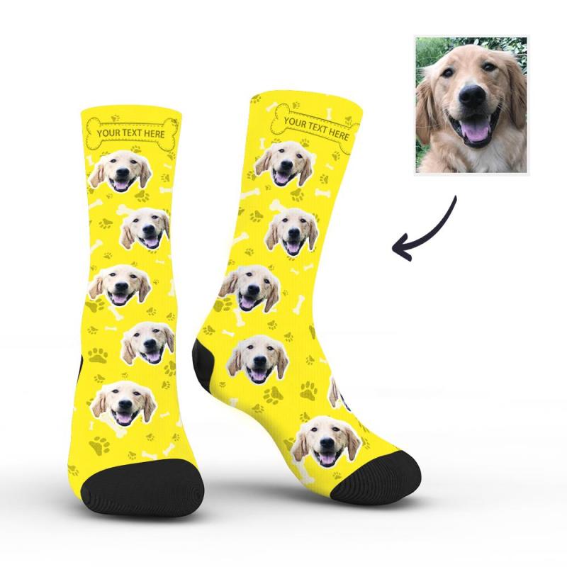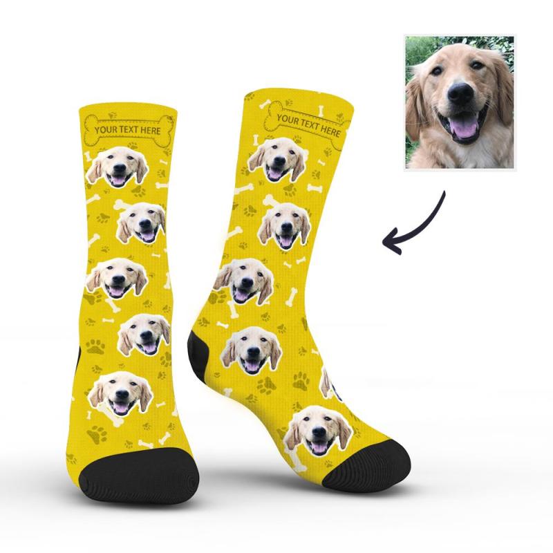 Personalisierte Socken Benutzerdefinierte Fotosocken Hund Foto Socken mit Ihrem Text - Gelb