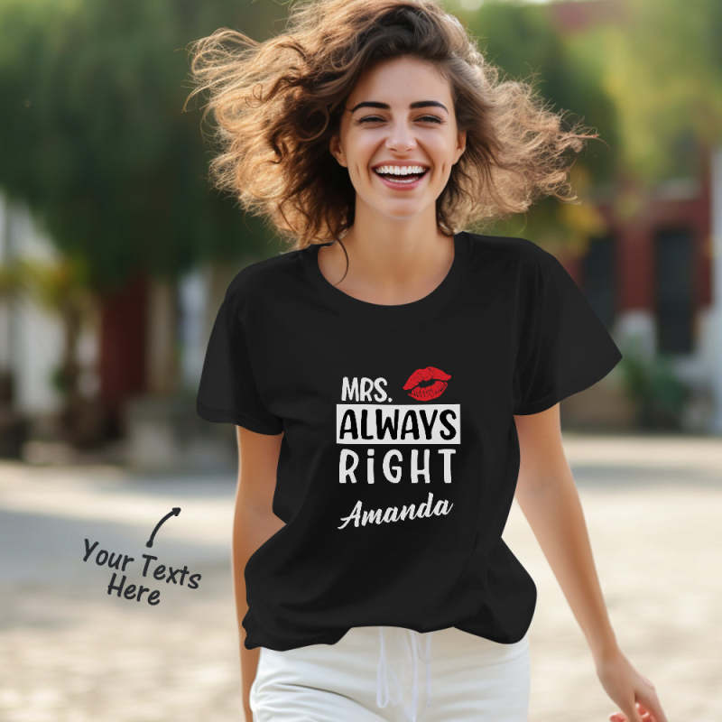 Individuelle Passende T-shirts Für Paare, Mr. Never Wrong Und Mrs. Always Right, Valentinstagsgeschenk
