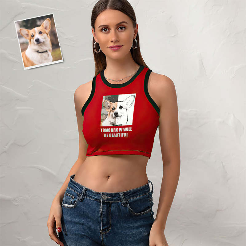 Custom Dog Face Damen Short Racer Weste Comic Lines Crop Top