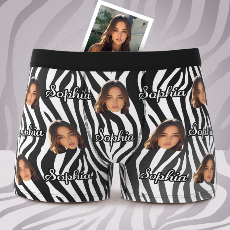 Benutzerdefinierte Gesichts- Und Text-streifen-boxershorts, Männergesicht, Valentinstagsgeschenke