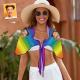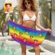 Benutzerdefiniertes Gesicht Strand Wickeln Frauen kurzer Sarongs Bikini abdecken – Regenbogen