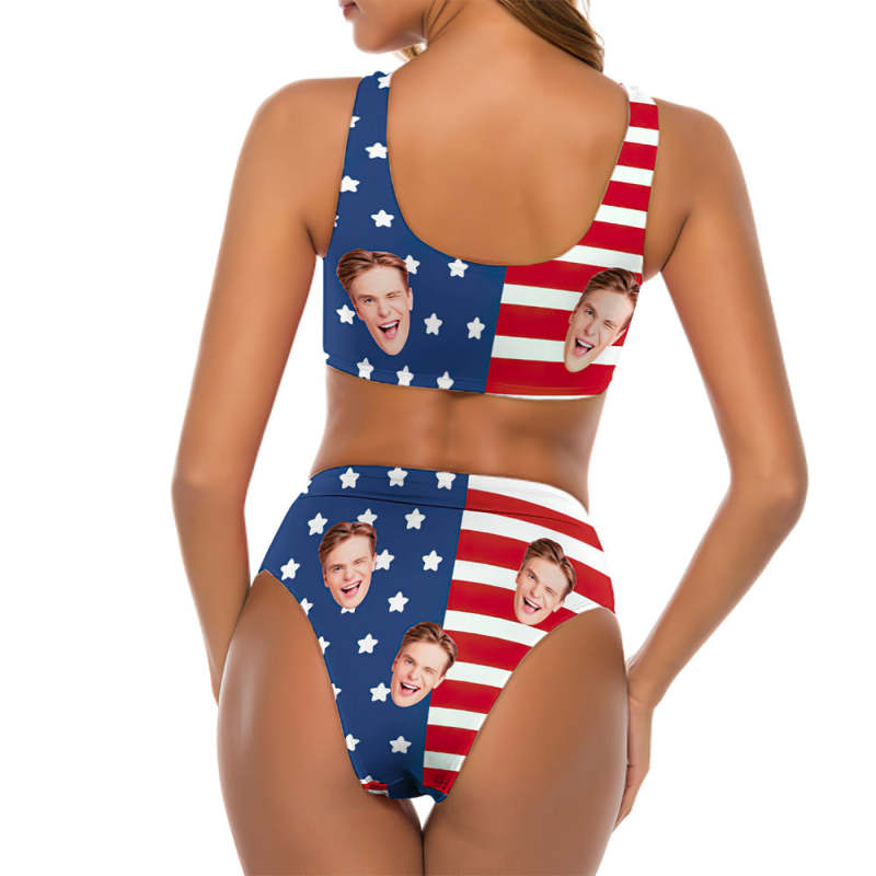 Der Zweiteilige Badeanzug Der Kundenspezifischen Gesichts-bikini-amerikanische Flaggen-frauen