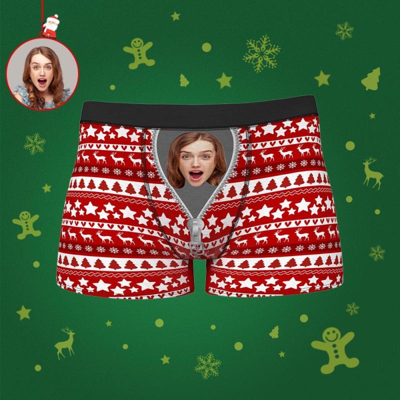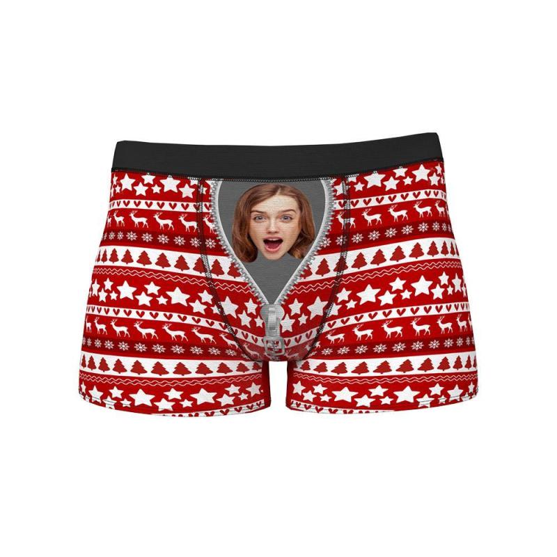 Benutzerdefinierter Gesichtsboxer Reißverschluss Wihnachten Rt Hrren Bxer Krze Hse