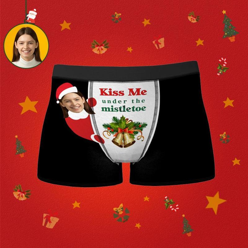 Benutzerdefiniertes Gesicht Weihnachtsboxer Herren Boxer Küss Mich Unter Dem Mistelzweig