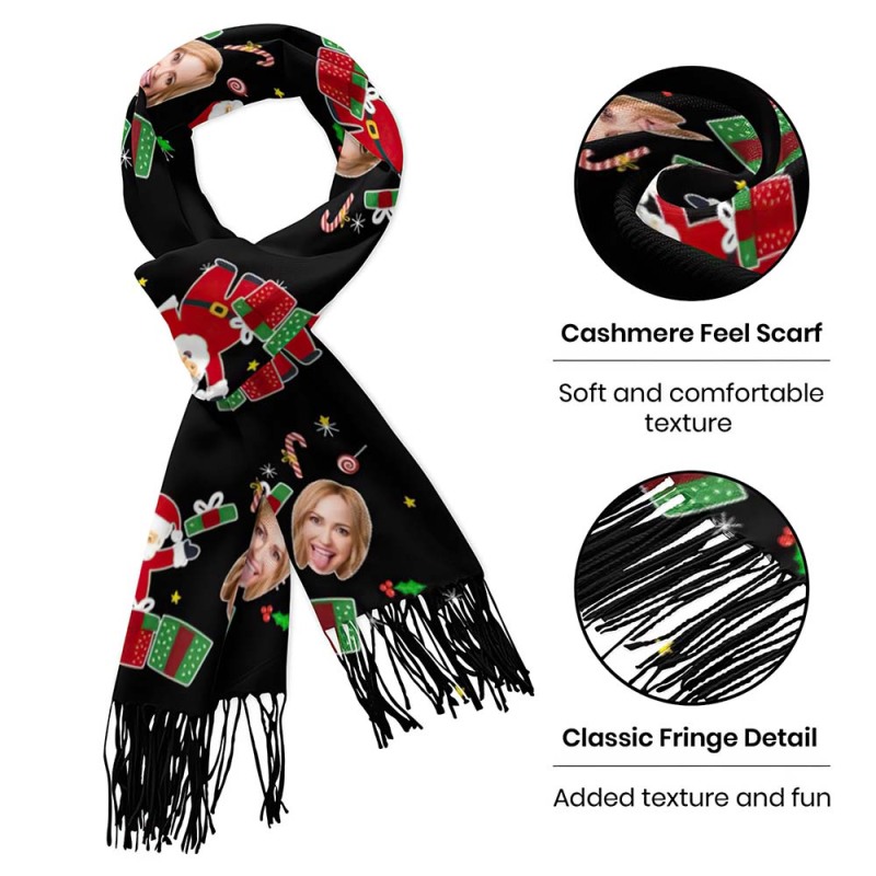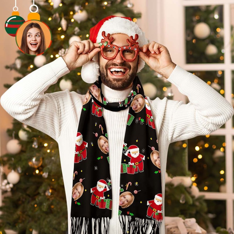 Benutzerdefiniertes Gesicht Weihnachtsschal Personalisiertes Weihnachtsüberraschungsgeschenk