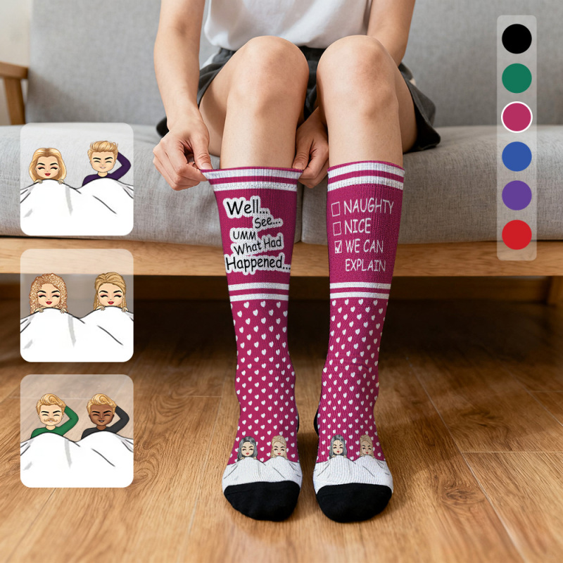 Benutzerdefinierte Gesichtskompressionssocken, Personalisierte Kniestrümpfe, Wir Können Es Erklären, Geschenk Für Paarliebhaber, Valentinstagsgeschenk