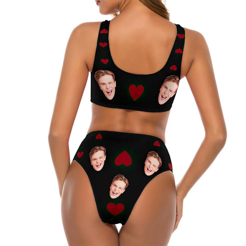 Benutzerdefiniertes Gesicht Bikini Mit Tiefem V-ausschnitt, Gelber Leopardenmuster, Zweiteiliger Damen-badeanzug
