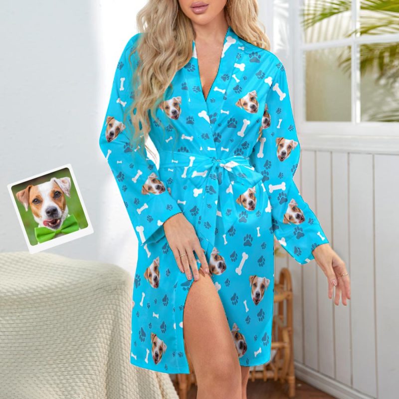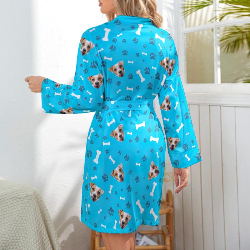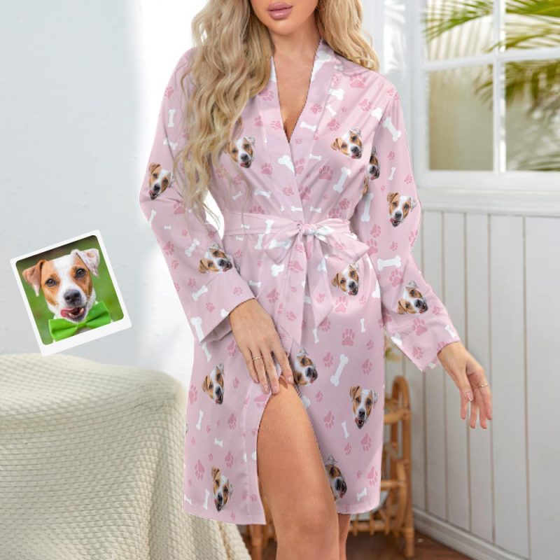 Benutzerdefinierte Gesicht Hund Pfotenabdruck Langärmlig Nachthemd Für Hundeliebhaber