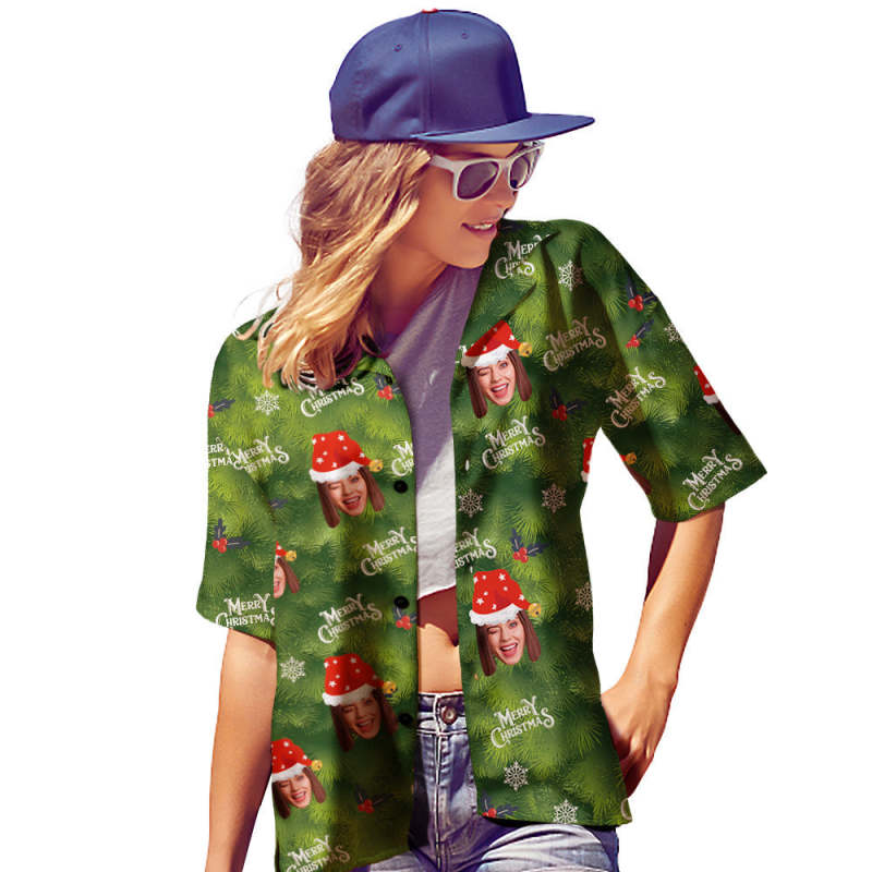 Custom Face Hawaiihemden Personalisiertes Fotogeschenk Damen Weihnachtshemden Weihnachtsmistel