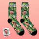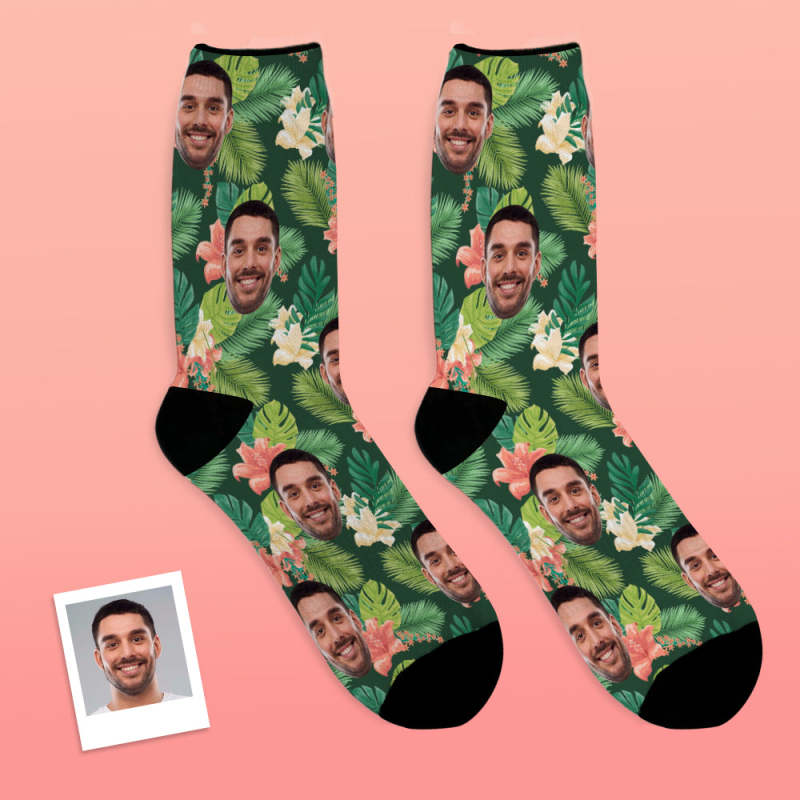 Hawaiische Socken Mit Benutzerdefiniertem Gesicht Mit Allover-Print Blättern Und Blumen And