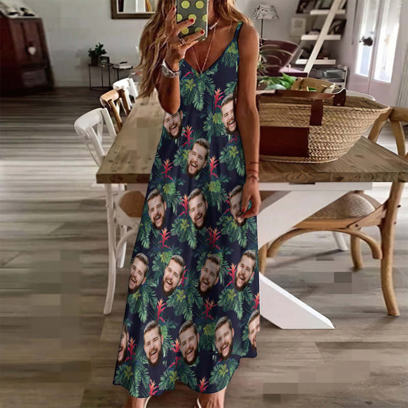 Benutzerdefiniertes Gesicht Im Hawaiianischen Stil Bromelia Langes Kleid Und Hemd Paar Outfit
