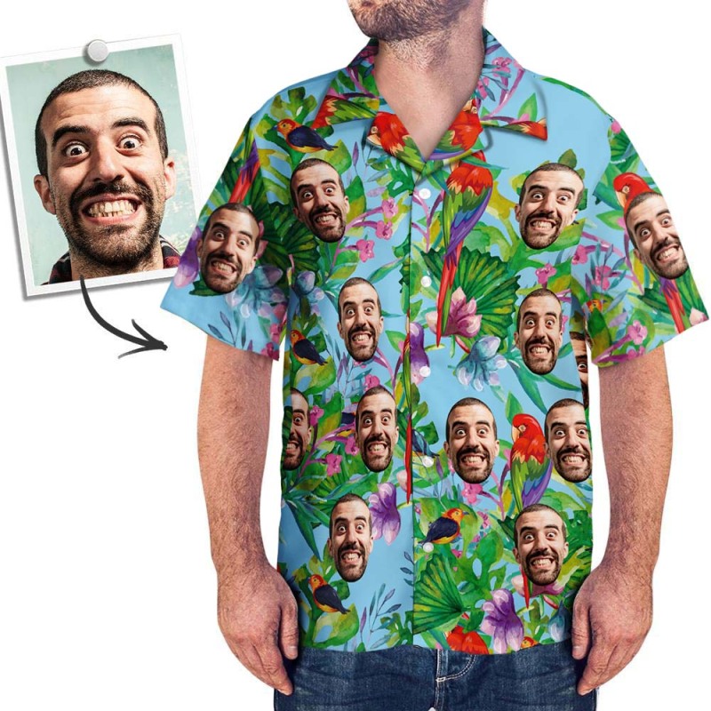 Benutzerdefiniertes Gesicht Im Hawaiianischen Stil Bunte Papagei Langes Kleid Und Shirt Family Matching