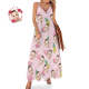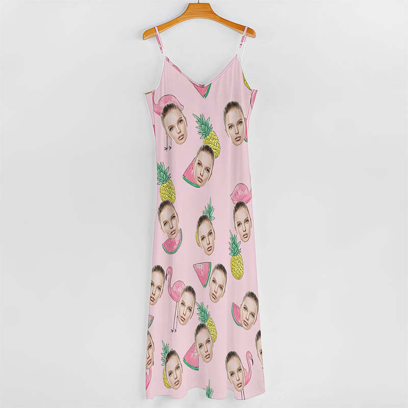 Benutzerdefiniertes Gesicht Langes Kleid Im Hawaiianischen Stil, Flamingo-rosa-trägerkleid