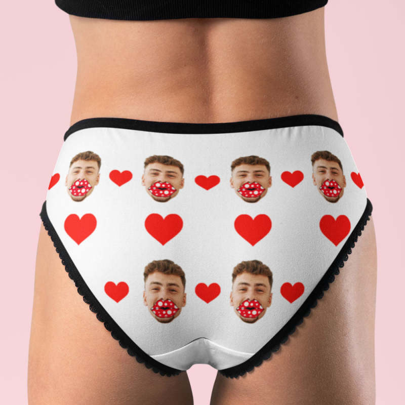 Personalisierte Boxershorts Mit Gesicht Und Herzen, Personalisierte Lippen, Tangas, Valentinstagsgeschenk Für Sie