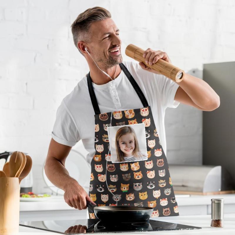 Benutzerdefinierte Gesicht Küchenschürze Kätzchen-Cartoon-Muster Allover-Print-Schürze