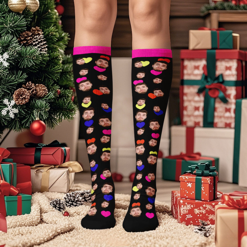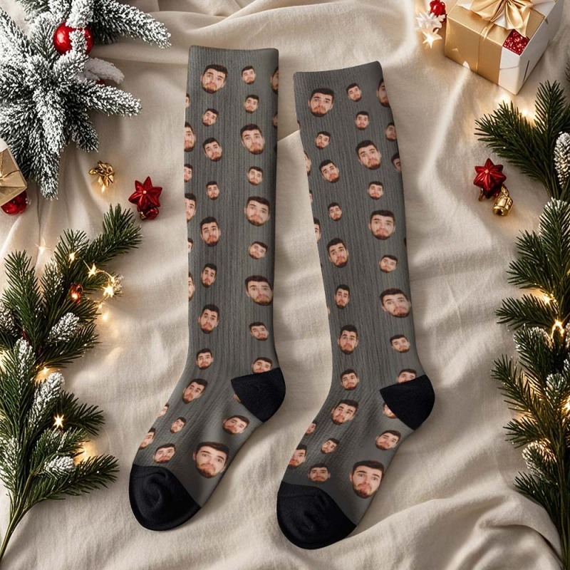 Kniehohe Socken Mit Individuellem Gesicht, Personalisierte Socken Frohe Weihnachten