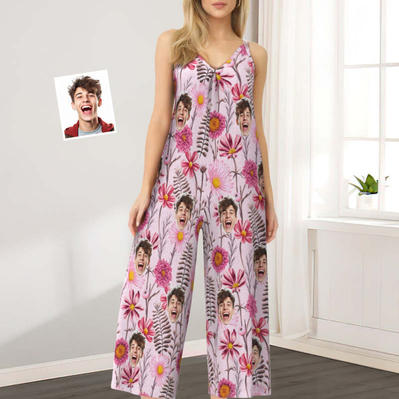 Lockerer Overall Mit Weitem Bein Und Rosa Blumen-strampler Mit Individuellem Gesicht - Lockerer Overall Mit Weitem Bein Und Rosa Blumen-strampler Mit Individuellem Gesicht - Lockerer Overall Mit Weitem Bein Und Rosa Blumen-strampler Mit Individuellem Gesicht - Lockerer Overall Mit Weitem Bein Und Rosa Blumen-strampler Mit Individuellem Gesicht -