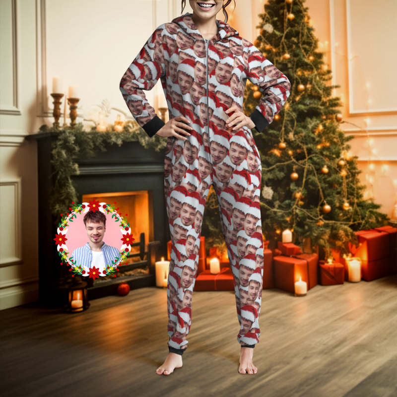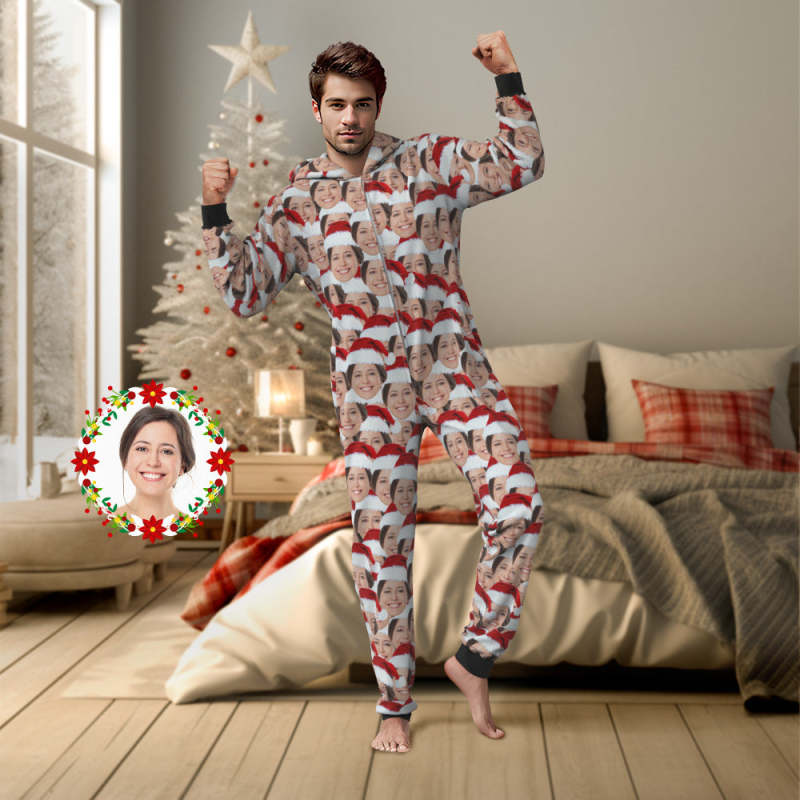 Benutzerdefinierte Face Mash Onesies Weihnachtspyjamas Einteiler Nachtwäsche Weihnachtsgeschenk