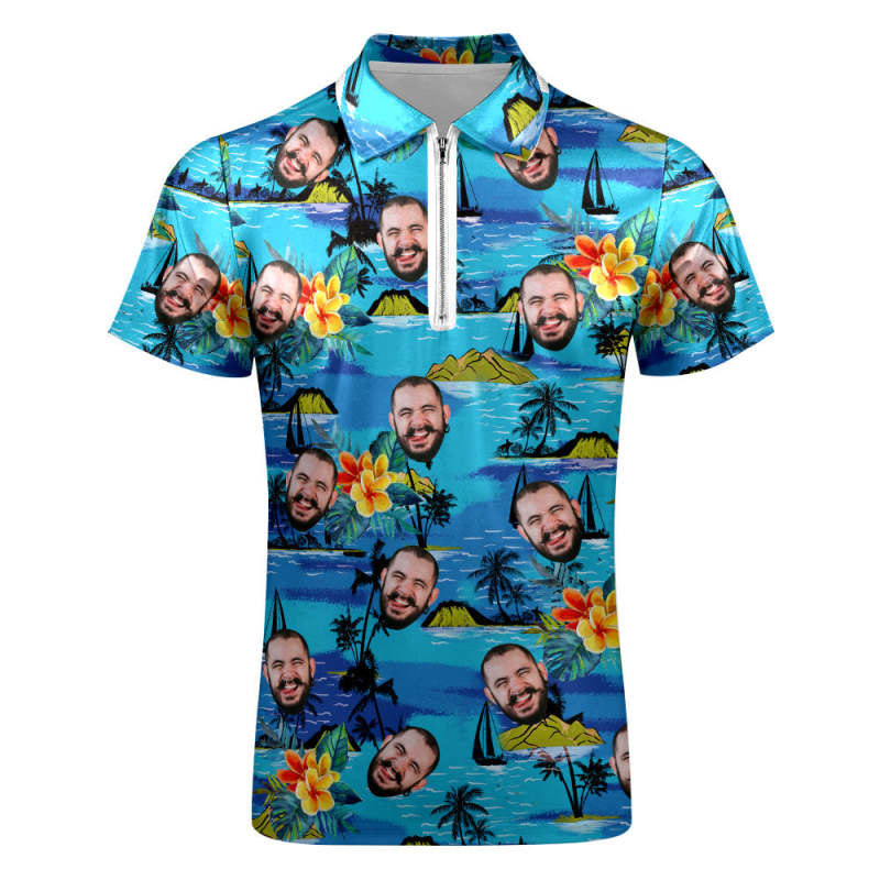 Custom Face Herren-poloshirt Mit Reißverschluss. Lustiges Poloshirt Für Freund Oder Ehemann