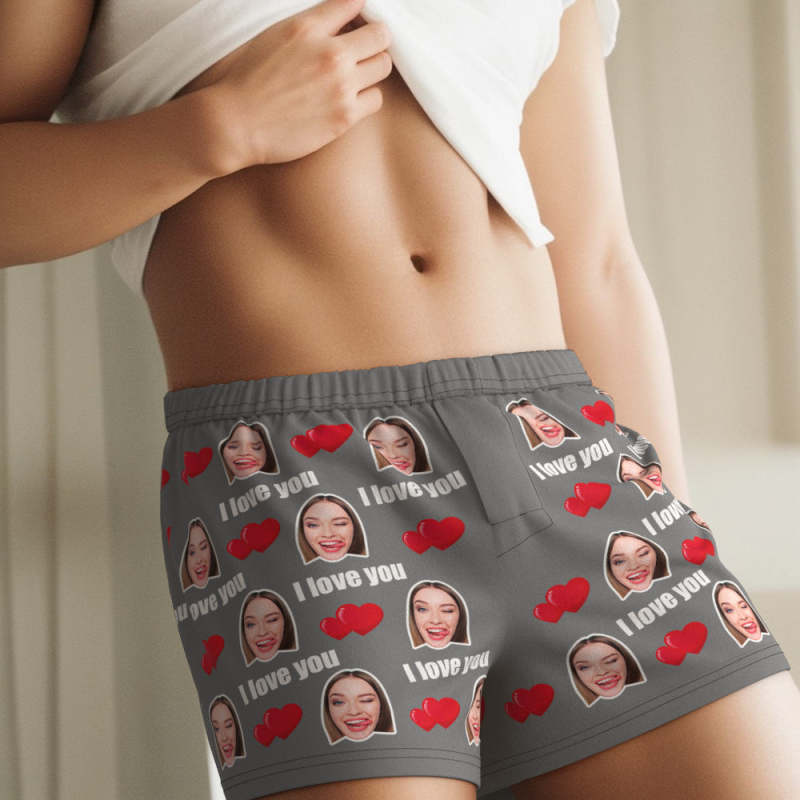 Personalisiertes Foto-unterwäsche-geschenk Für Ihn. Mehrfarbige „i Love You“-boxershorts Mit Individuellem Gesicht