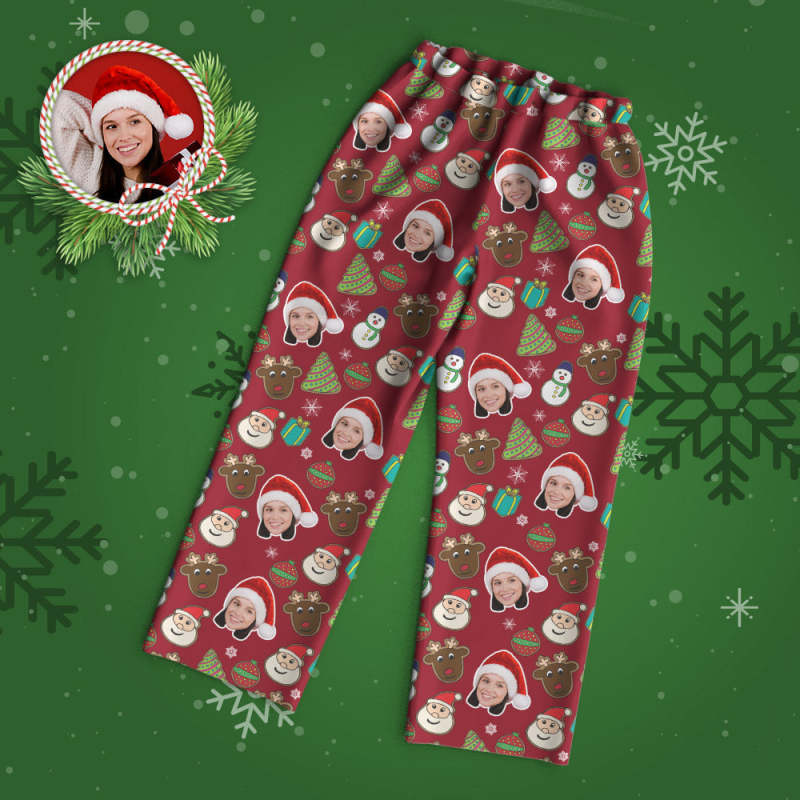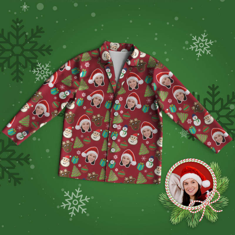 Benutzerdefinierter Gesichts-pyjama, Personalisierter Roter Foto-pyjama, Weihnachtsgeschenke
