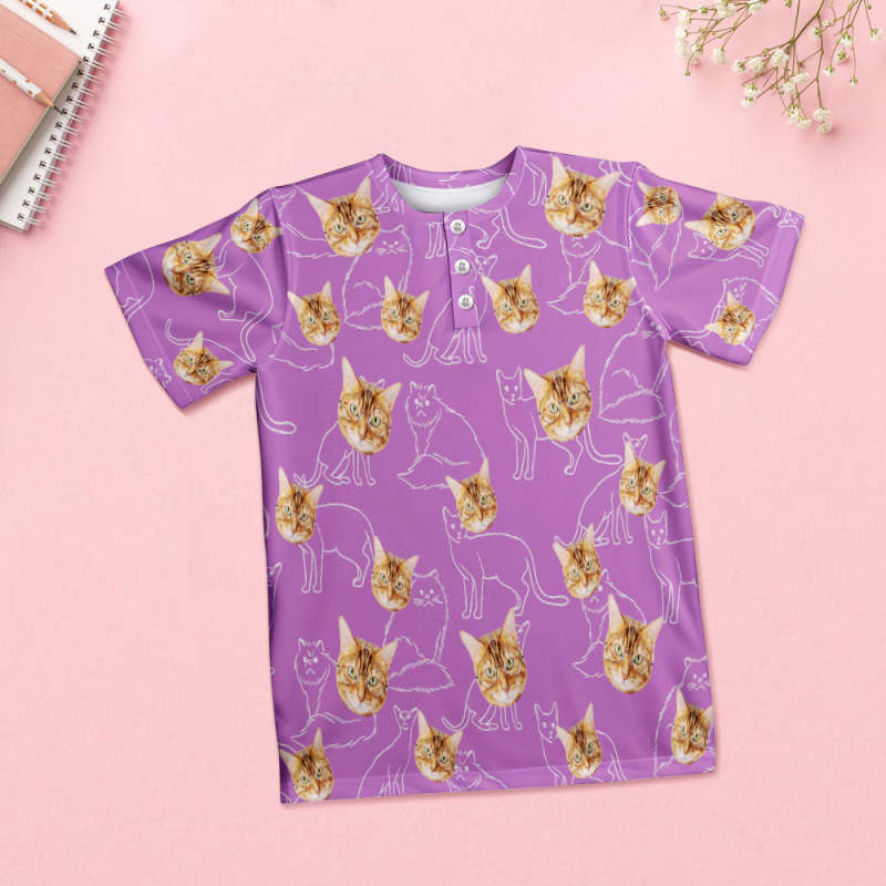 Benutzerdefinierter Gesichts-pyjama Mit Katzengesicht, Kurzes Pyjama-set Für Damen, Geschenk Für Haustierliebhaber