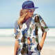 Benutzerdefiniertes Gesicht-Shirt Damen Und Kinder Hawaii Hemden Kurzarm-Shirt Geschenk Zum Muttertag Blaue Blumen