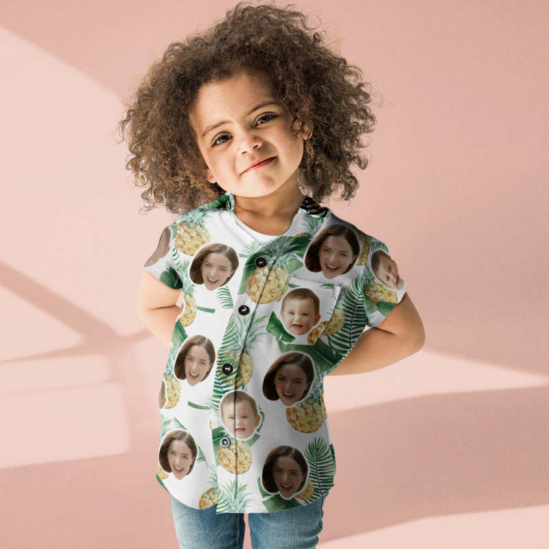 Benutzerdefiniertes Gesicht-Shirt Damen Und Kinder Hawaii Hemden Kurzarm-Shirt Geschenk Zum Muttertag Ananas