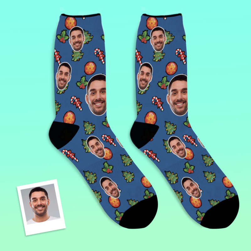 Benutzerdefinierte Gesicht Socken Candy Cane Weihnachtssocken