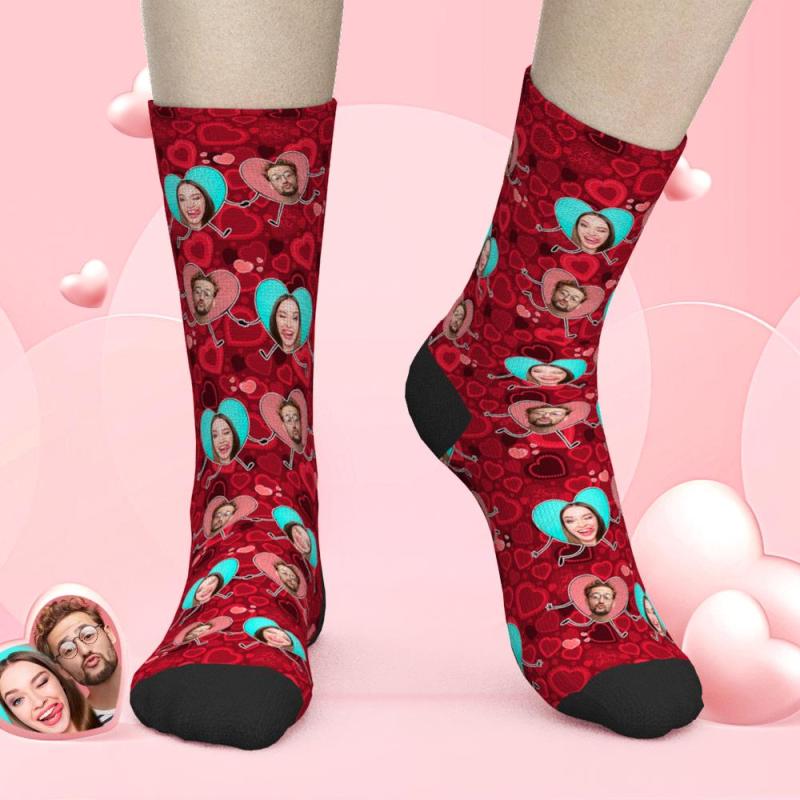 Benutzerdefinierte Gesichtssocken Farbverlauf Herz Lustige Socken Valentinstag Geschenke