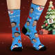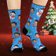 Benutzerdefinierte Gesichtssocken, Personalisiertes Foto, Blaue Socken, Cartoon-weihnachtsmann Und Schneemann