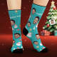 Benutzerdefinierte Gesichtssocken, Personalisiertes Foto, Blaue Socken, Schneemann, Frohe Weihnachten