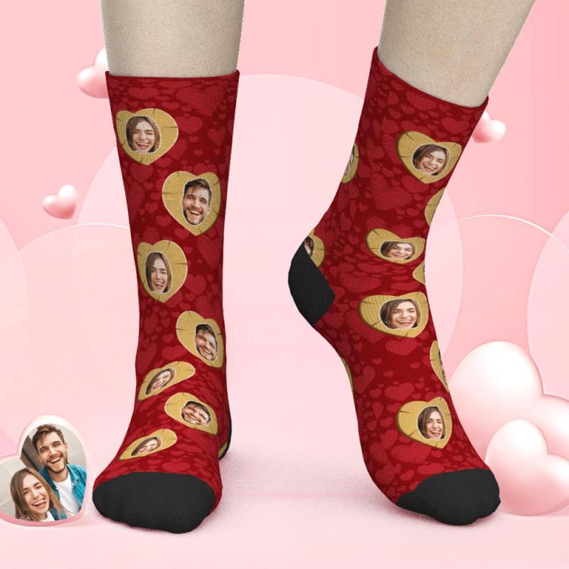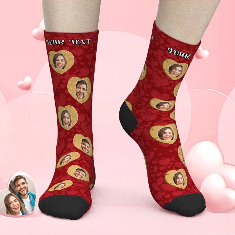 Benutzerdefinierte Gesichtssocken Valentinstag Socken Mit Holzgeschnitzten Herzen