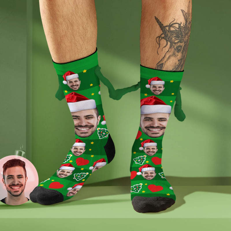 Benutzerdefinierte Gesichtssocken Mit Weihnachtsmannmütze, Lustige Puppe, Mittlere Röhrensocken, Magnetisch Haltende Hände, Socken, Weihnachtsgeschenke