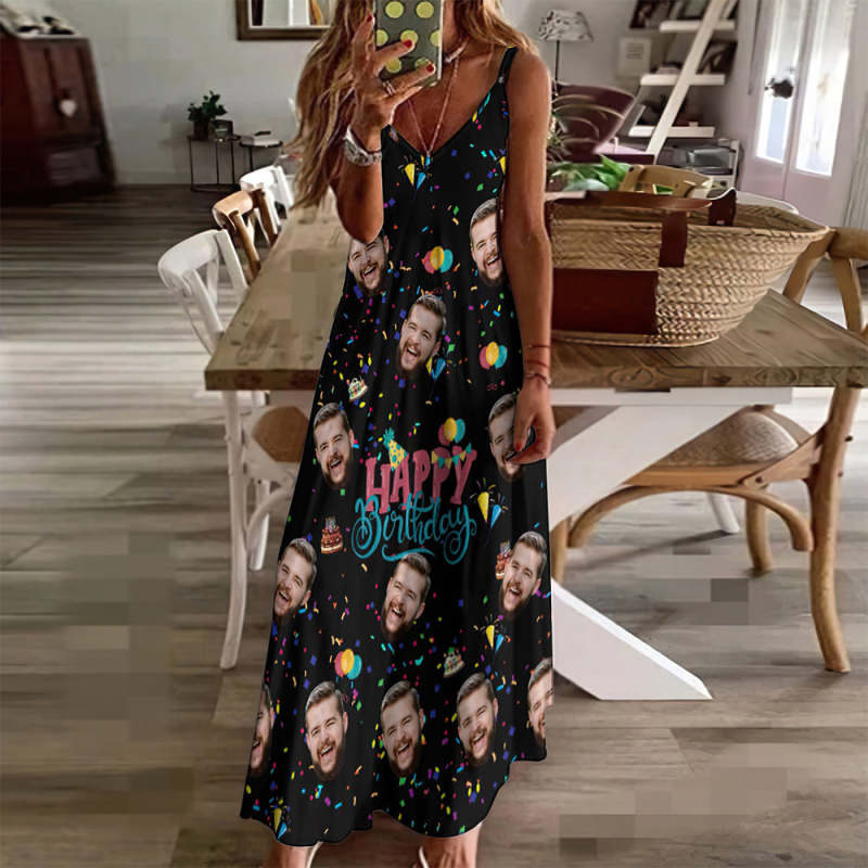 Benutzerdefiniertes Gesicht Streamer Einzigartiges Geburtstagsgeschenk Langes Kleid Und Hemd Paar Outfit