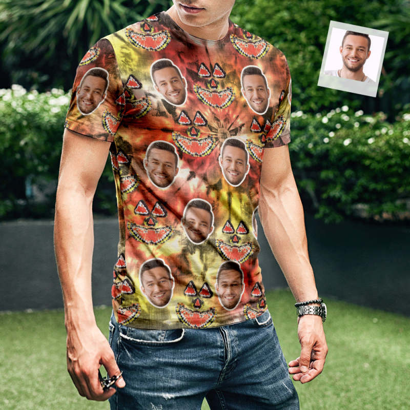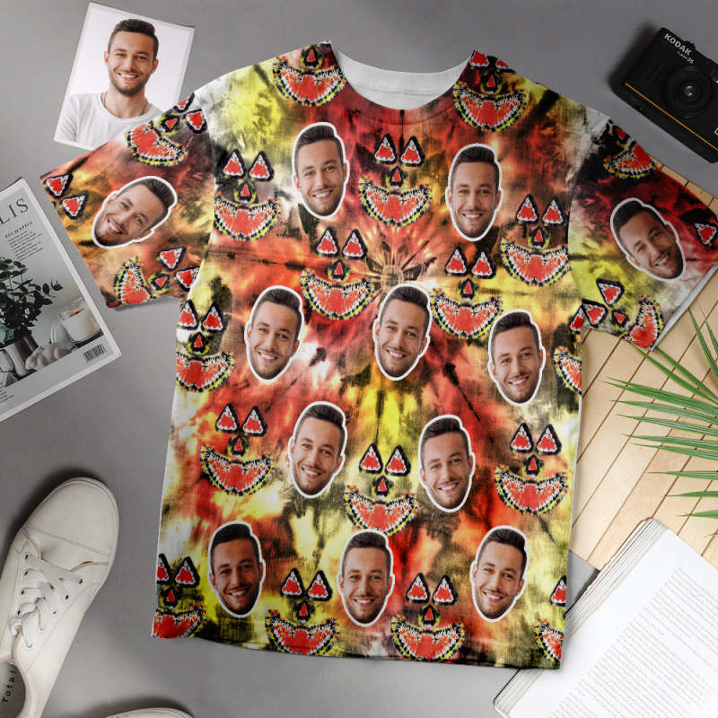 Custom Face Tie Dye Men Pumpkin Smiley T-shirt